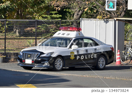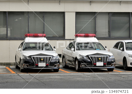 大阪府警察廳豐中警察署和兵庫縣警察廳伊丹警察署的警車並排停放。
