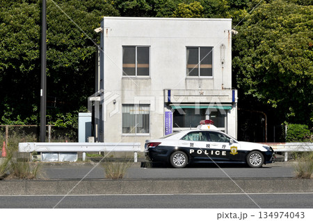 一輛來自東京警署灣岸派出所的巡邏車停在社區安全中心前。