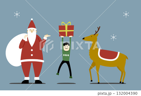 時尚的聖誕插圖集(聖誕老人、馴鹿、禮物),帶有文字和背景