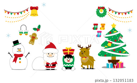 可愛的聖誕插圖集(聖誕老人、馴鹿、禮物、樹、雪人),帶有文字和背景