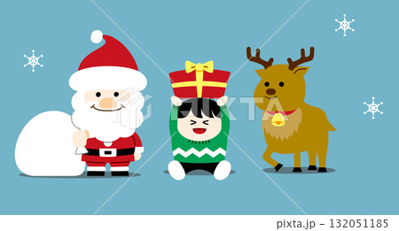 可愛的聖誕插圖集(聖誕老人、馴鹿、禮物),有背景,沒有文字