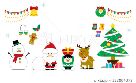 時尚的聖誕插圖集(聖誕老人、馴鹿、禮物、樹、雪人),帶有文字和背景