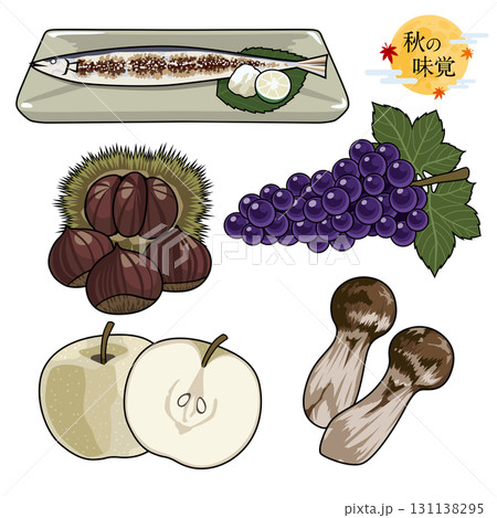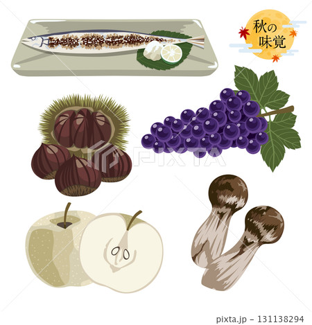 秋季風味插圖集(秋刀魚、栗子、葡萄、梨子、松茸)主線