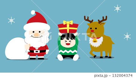 可愛的聖誕插圖集(聖誕老人、馴鹿、禮物),有背景,沒有文字
