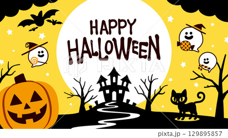 萬聖節插畫:南瓜、鬼魂、黑貓、滿月