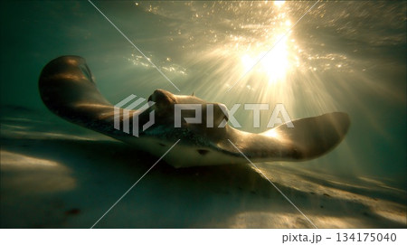 光線在水中跳躍,金色的光芒穿透水面——一幅奇妙的水下景象