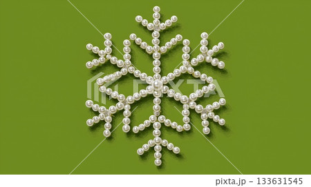 珍珠雪花圖案 + 綠色背景 — 優雅的冬季裝飾插圖