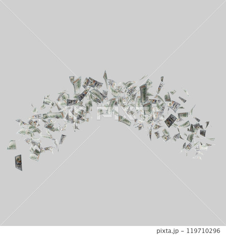 Scattered dollar bills arching in the air on a light gray background, symbolizing financial flow, wealth, income, or cash movement. Perfect for finance, investment, or money-related themes.