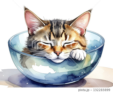 人工智慧生成的貓在金魚缸裡睡覺的圖像